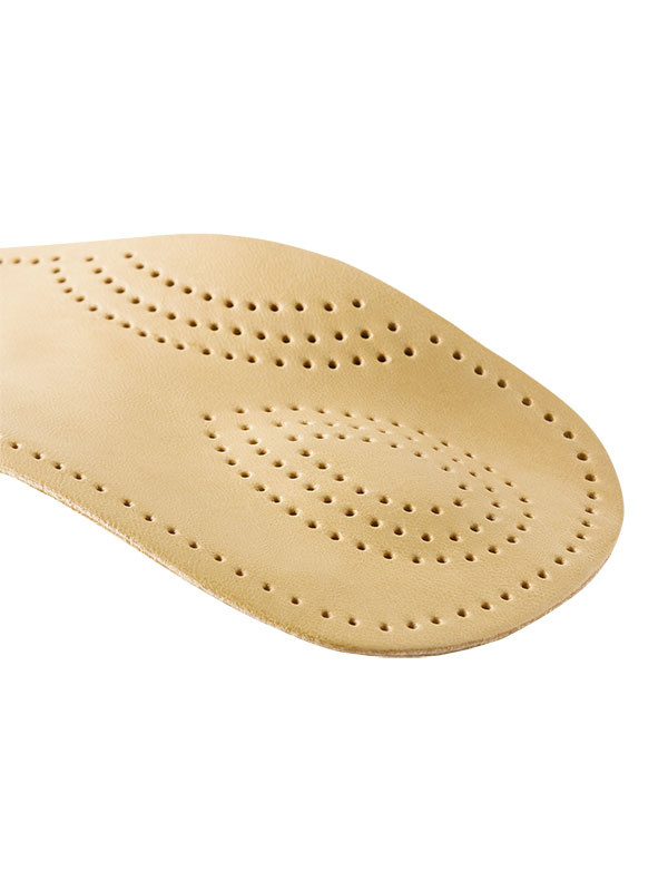 Helposti kenkään asetettava nahkapäällysteinen pohjallinen. Tuotteen pohjassa on pieni liimapinta, jonka avulla pohjallinen pysyy hyvin kengässä.