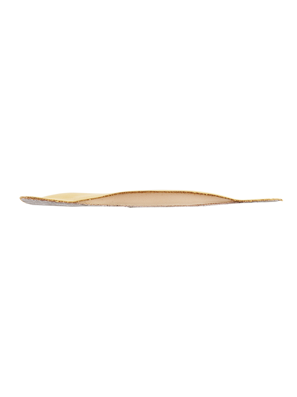 Helposti kenkään asetettava nahkapäällysteinen pohjallinen, jonka pohjassa olevan pienen liimapinnan avulla pohjallinen pysyy hyvin kengässä.