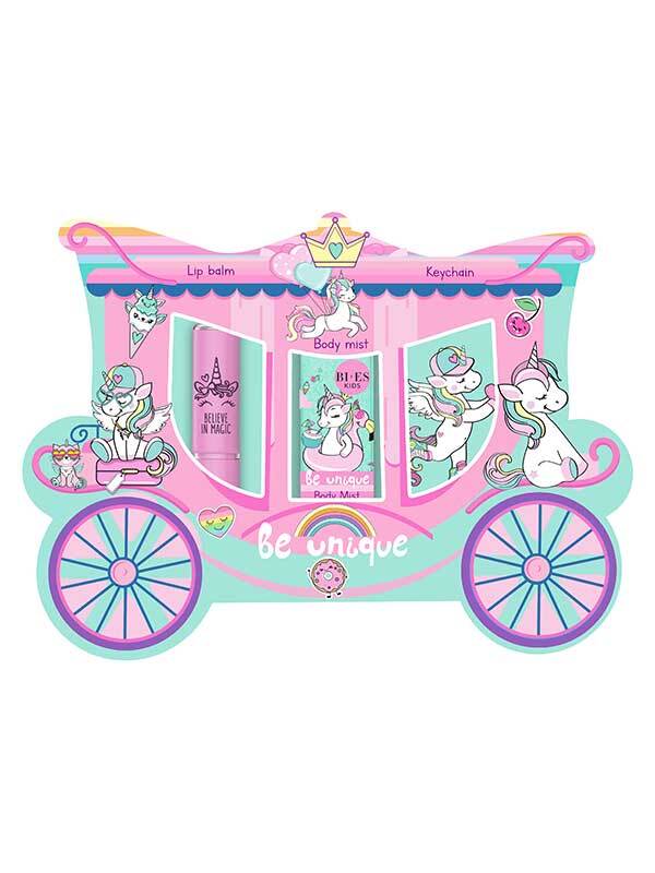 Kauniisti suunniteltu karusellilahjapakkaus, jossa makeantuoksuinen body mist (100ml), huulirasva (4g) sekä avaimenperä. Ihana suosikkipakkaus perheen pienimmille on myös aivan upea lahja!