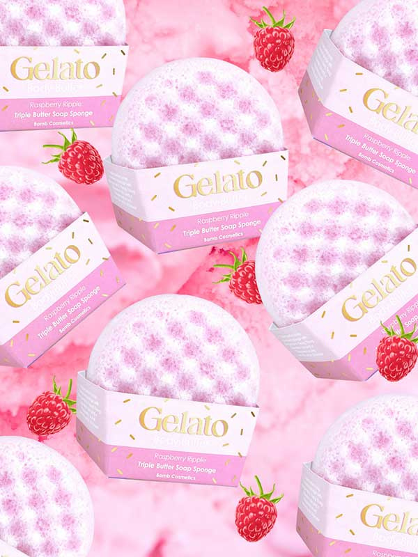 Vadelman ja sitruksen tuoksuinen vartalon pesusieni.