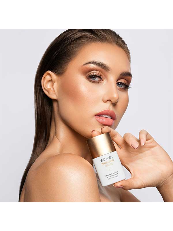 BYS Healthy Glow Bronzing Drops -hoitopisarat sävyssä Summer Bronze tuovat kasvoille luonnollisen, päivettyneen sävyn ja upean hohteen. Kevyt nestemäinen koostumus sulautuu ihoon täydellisesti ja antaa kasvoille lämpöä ja eloa – käytä yksinään tai sekoita seerumiin, päivävoiteeseen tai meikkivoiteeseen säteilevän lopputuloksen saavuttamiseksi.