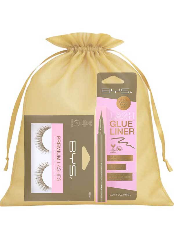 BYS Glam & Lash -setti yhdistää näyttävät ripset ja tumman liiman täydelliseksi paketiksi! Tyylikkäässä kultaisessa organzapussissa saat: