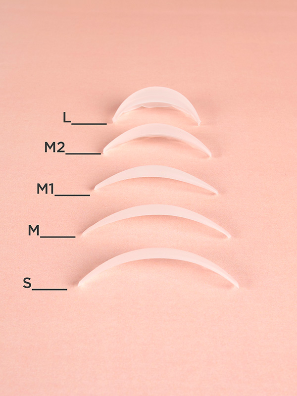 Taivutusmuotit on suunniteltu tarkasti sopimaan jokaisen asiakkaan silmän muotoon. Tuotteen silikoni on poikkeuksellisen pehmeää, joten se tuntuu asiakkaasta miellyttävältä ja sen asetteleminen oikeaan muotoon on helppoa, myös hyvin pienisilmäisen asiakkaan kohdalla. Muotin reunat on kaarrettu, jotta sen asettaminen silmään ilman riskiä muotin irtoamisesta on helpompaa. Taivutusmuotti tulee asettaa tarkasti mahdollisimman lähelle ripsirajaa. Muotin koko ja kaarevuus on merkattu muotin ulkosyrjään. Pakkauksessa on 10 kpl. Taivutusmuotteja on saatavilla 5 eri kokoa (S, M, M1, M2 ja L). Katso kuvasta kokoerot!
