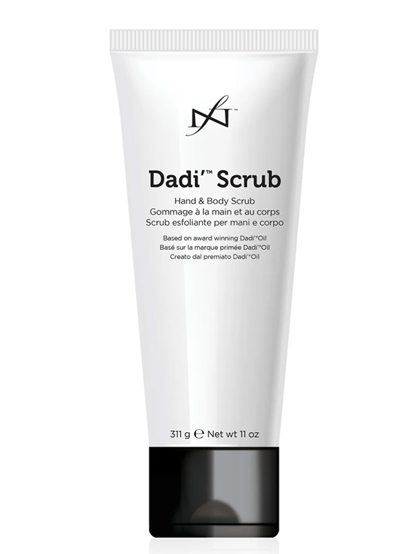 Ylellinen kuorinta käsille, jaloille ja vartalolle sisältäen saman tuoksun kuin suositussa Dadi’ Oil -hoitoöljyssä. Jättää ihon pehmeäksi ja kosteutetuksi. Kuorinta sisältää mm. saflori- ja kookosöljyä, Dadi’ Oil -hoitoöljyn öljyjä sekä kuorivana aineosina sekä sokeri että suola, joka tekee kuorinnasta kaksivaiheisen.