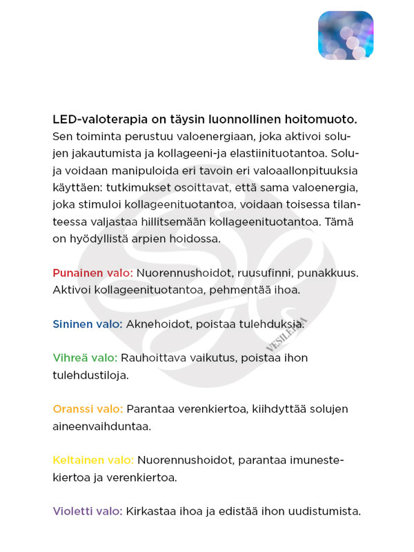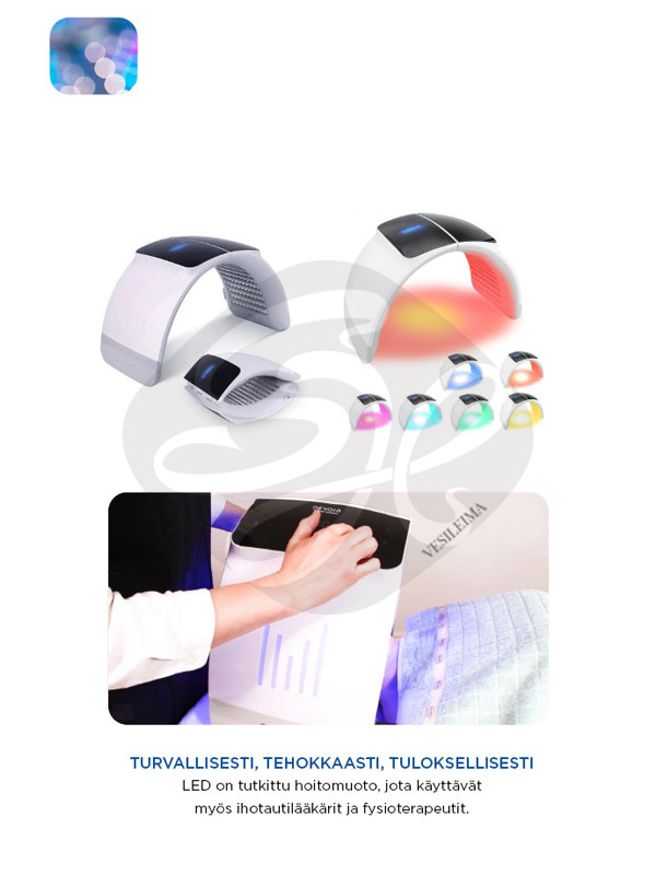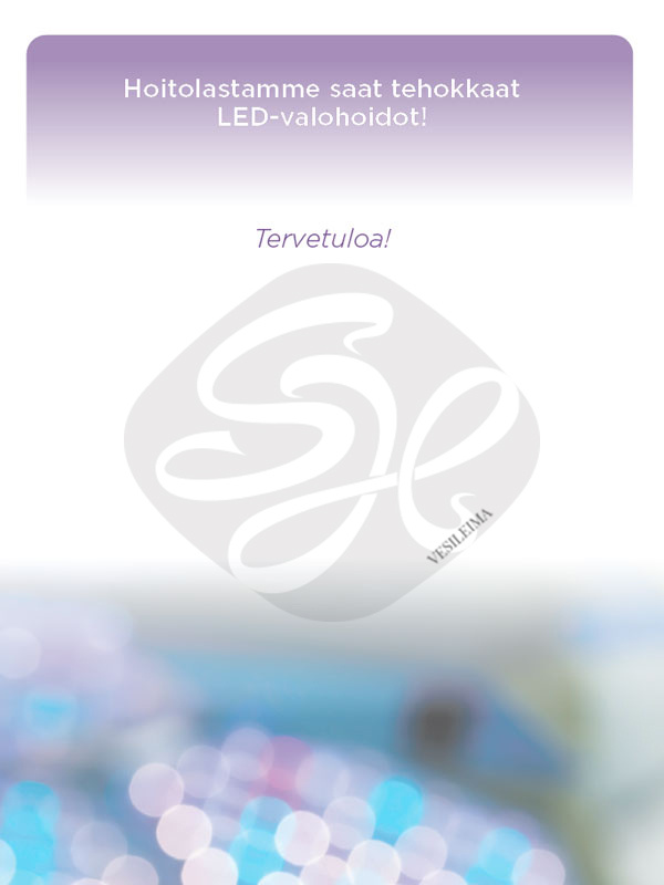 4-sivuinen esite Led -valohoidoista. Koko A5, taitettu.