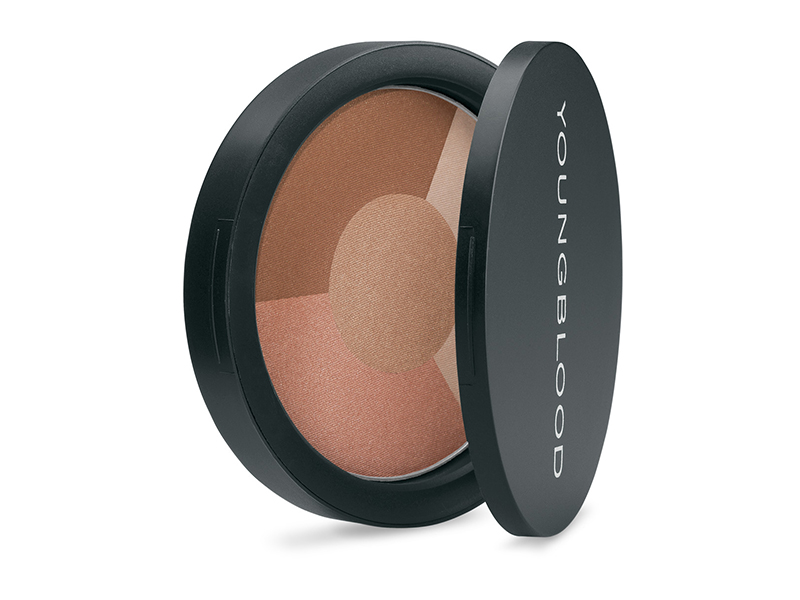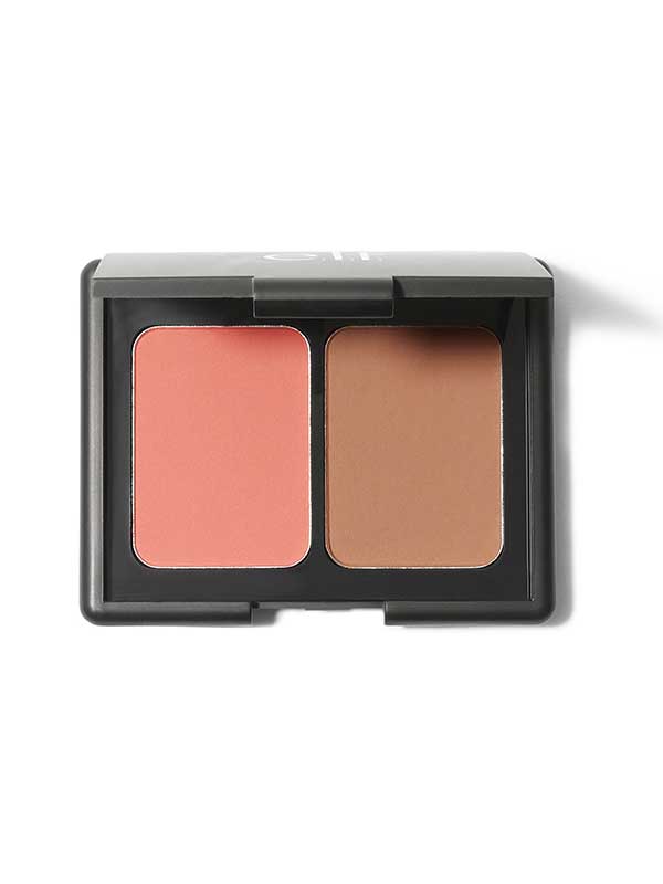 Kätevässä paletissa persikkainen poskipuna ja aurinkopuuteri.