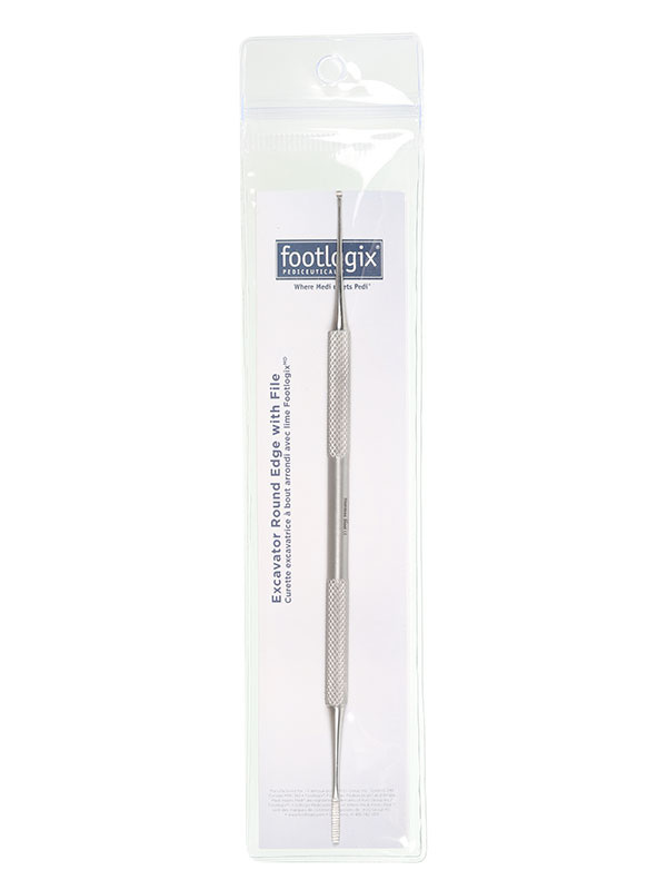 Footlogix® Excavator Round Edge kaksipäinen instrumentti on valmistettu korkealaatuisesta, lääketieteellisesti laadukkaasta Solingenin ruostumattomasta teräksestä.