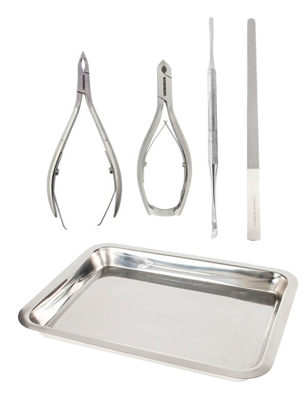 Kaksipäinen instrumentti, toisessa päässä erittäin ohut, lusikkamainen pää (leveys 1,7 mm), millä puhdistat tehokkaasti varpaankynsien alta ja reunoilta ylimääräisen kudoksen ja muut jäämät. Toisessa päässä on kapea kaksipuoleinen kulmaviila.