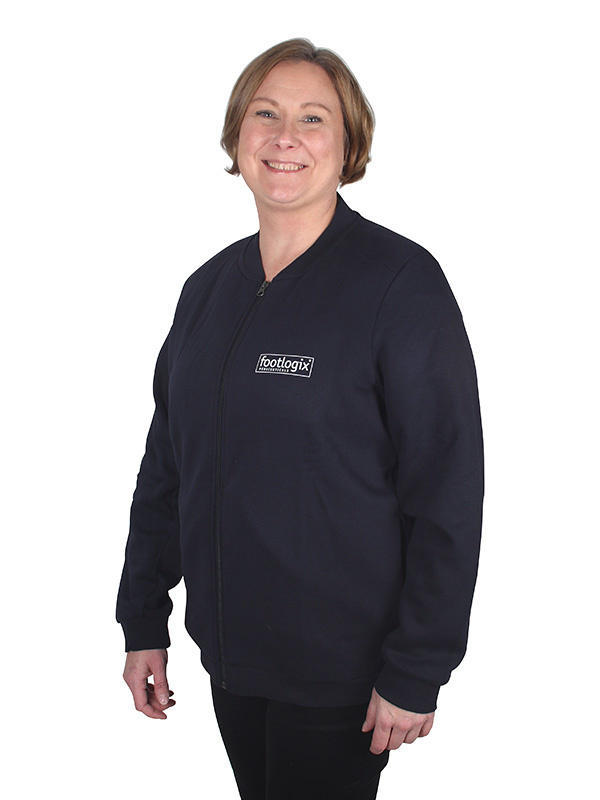 Erittäin laadukas ja kestävä tummansininen collegetakki Footlogix-logolla. Vahva vetoketju edessä sekä sivutaskuissa. Pehmeä, harjattu sisäkangas.