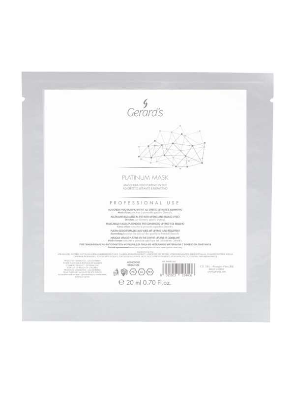 Gerard’s Platinum mask -hopeinen kuitukangasnaamio. Liftaava kuitukangasnaamio ainutlaatuisella intensiivisellä kohottavalla ja juonteita täyttävällä vaikutuksella. Naamio vaikuttaa tehokkaasti syviin ryppyihin ja ensimmäisiin ikääntymisen merkkeihin.