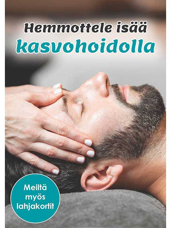 Kausijuliste Hemmottele isää kasvohoidolla. Koko 50×70 cm, materiaali julistepaperi.