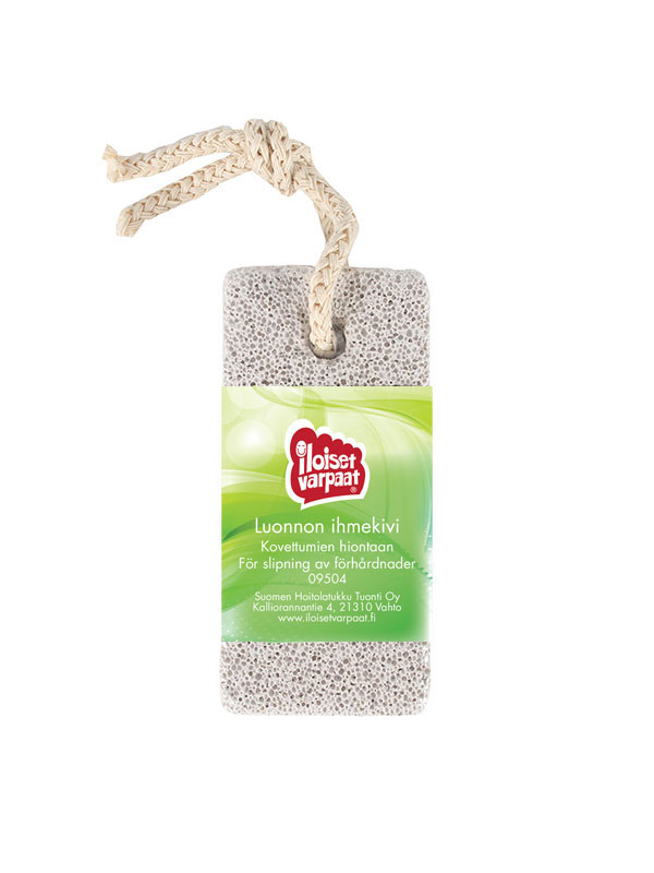 Käyttö: Kasta ihmekivi veteen ja hankaa kovettumia kevyesti pyörivin liikkein. Huuhtele irronnut ihosolukko jaloista ja pese ihmekivi vedellä ja saippualla. Anna ihmekiven kuivua ilmavassa paikassa. Älä käytä kuivalle tai vaurioituneelle iholle.