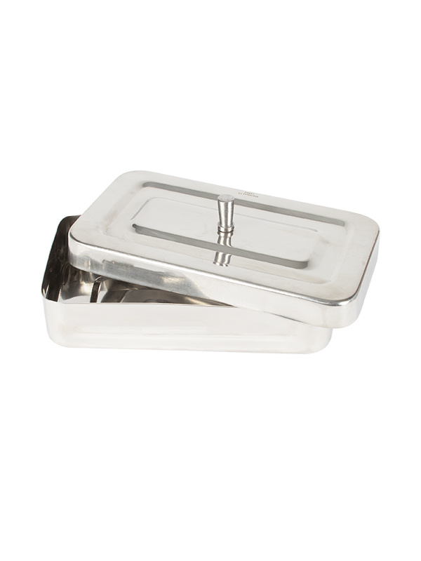 Ruostumatonta terästä, tiiviskansinen laatikko instrumenttien säilyttämiseen. Ruostumatonta terästä.