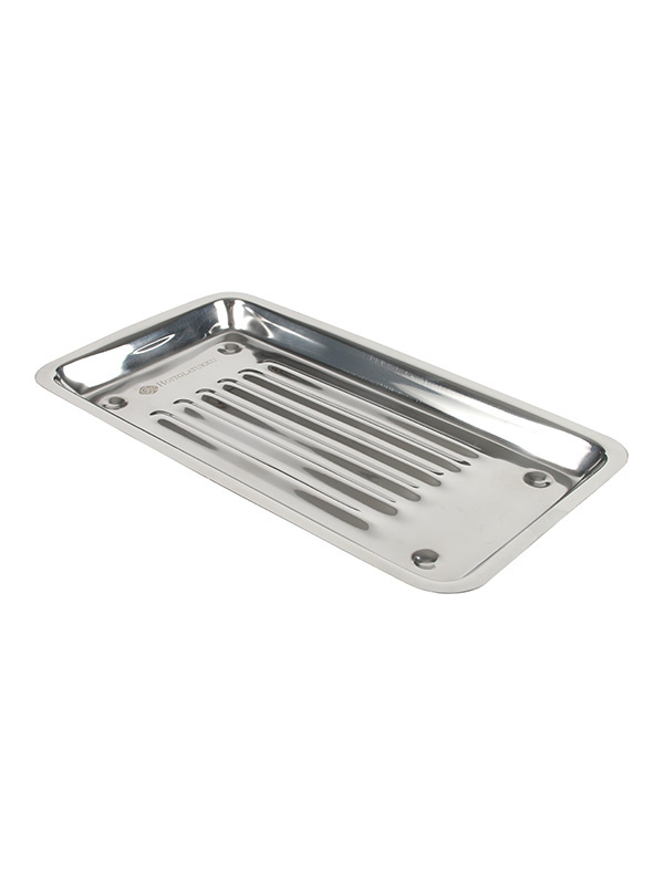 Ruostumatonta terästä oleva tarjotin on tarkoituksenmukainen ja hygieeninen alusta instrumenteille. Tarjottimissa matala reuna, joten instrumentit eivät putoile. Uritus pohjalla pitää instrumentit järjestyksessä.