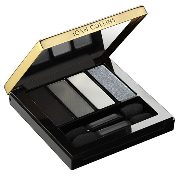EYESHADOW QUAD – Misty Blacks & Silver – luomiväripaletissa mustaa ja harmaata mattana ja lisänä kimaltava hopea.