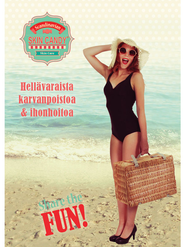 Kausijuliste Hemmottelulahjakortit koko 50×70 cm, materiaali julistepaperi.