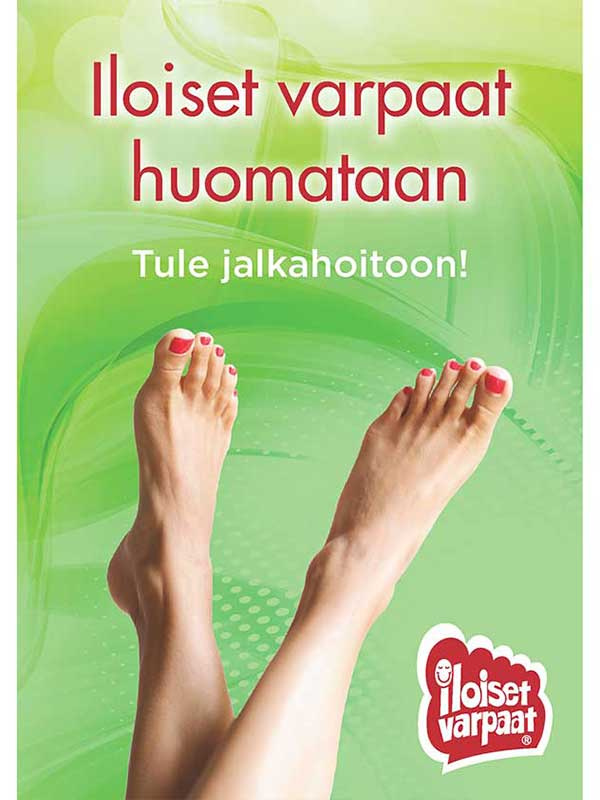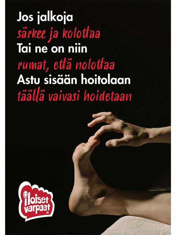 Iloiset Varpaat -sarjajuliste Jos jalkoja särkee, koko 50×70 cm, materiaali julistepaperi.