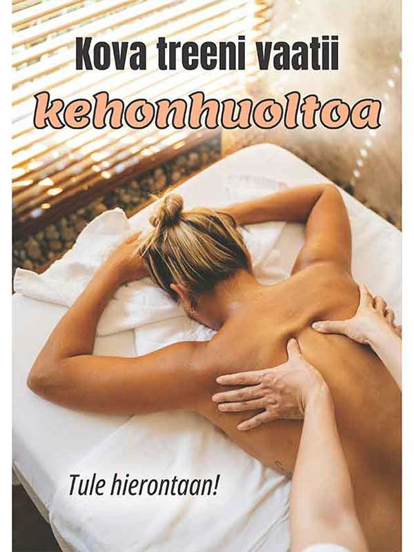 Kausijuliste Kova treeni vaatii kehonhuoltoa koko 50×70 cm, materiaali julistepaperi.