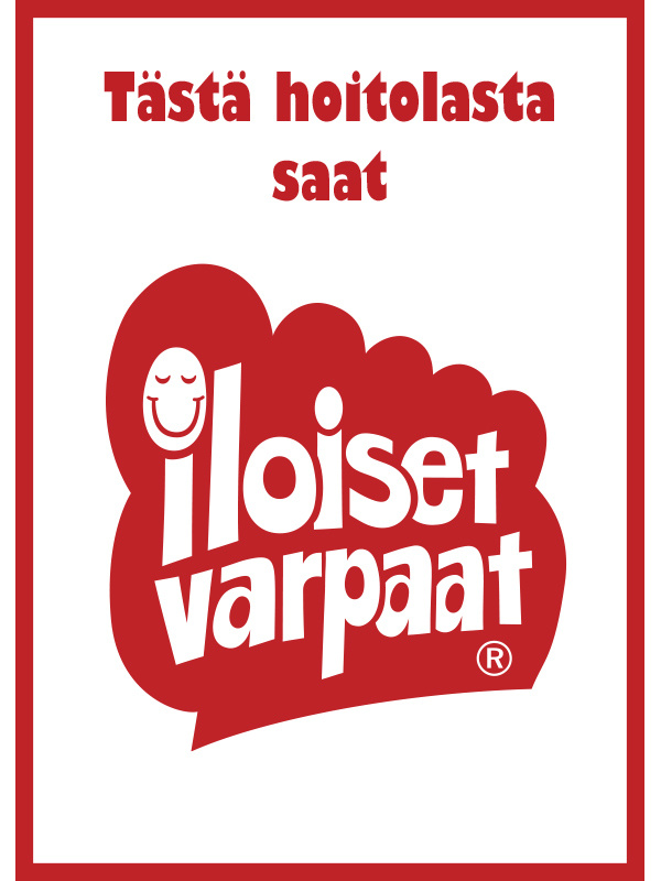 Sarjajuliste Tästä hoitolasta Iloiset Varpaat koko 50×70 cm, materiaali julistepaperi.