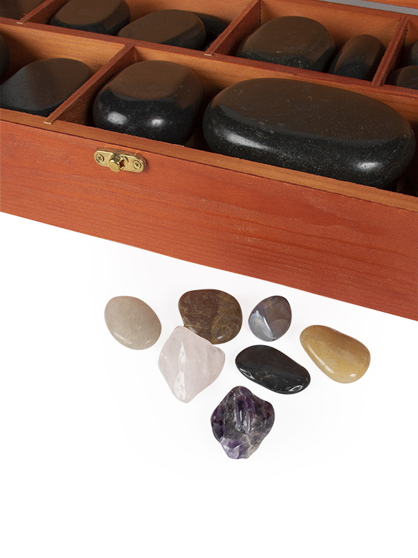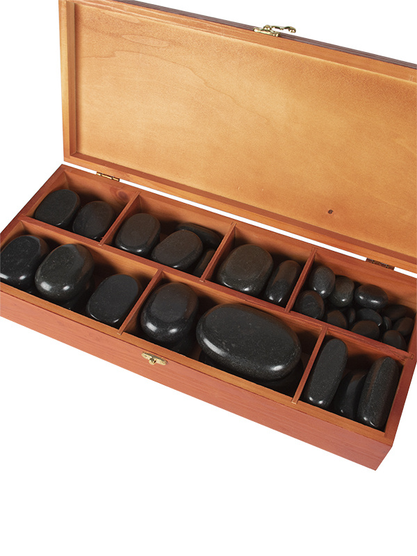 Tämä kivisetti sisältää yhteensä 64 laadukasta kiveä, kivet toimitetaan kauniissa puisessa laatikossa, jossa ne pysyvät siististi hyvässä järjestyksessä. Sileät ja ei-huokoiset basalttikivet luovuttavat lämpöä jopa 45 minuuttia. Kuumakivihieronnan lisäksi voit tehdä myös vartalon muokkaushoitoja käyttäen hoitovoiteita jotka vaikuttavat kehon rasva-ainevaihduntaan. Lämmittävät kivet tehostavat voiteiden ominaisuuksia.