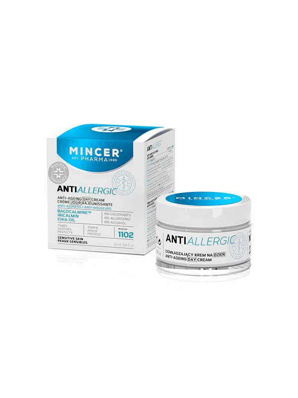 Mincer Pharman kiinteyttävä, rauhoittava ja ihoa kosteuttava päivävoide herkälle ja herkistyneelle iholle. Vähentää ihon reagoivuutta ulkoisille ärsykkeille ja suojaa ihoa päivän aikana. Sisältää myös ihoa kiinteyttäviä ja napakoittavia ainesosia sekä luonnonöljyjä. Tuotelinja sisältää ihoa rauhoittavia Bacocalmine™ ja Iricalmin -ainesosia. Dermatologisesti testattu. 0% väriaineita, allergeeneja ja alkoholia.