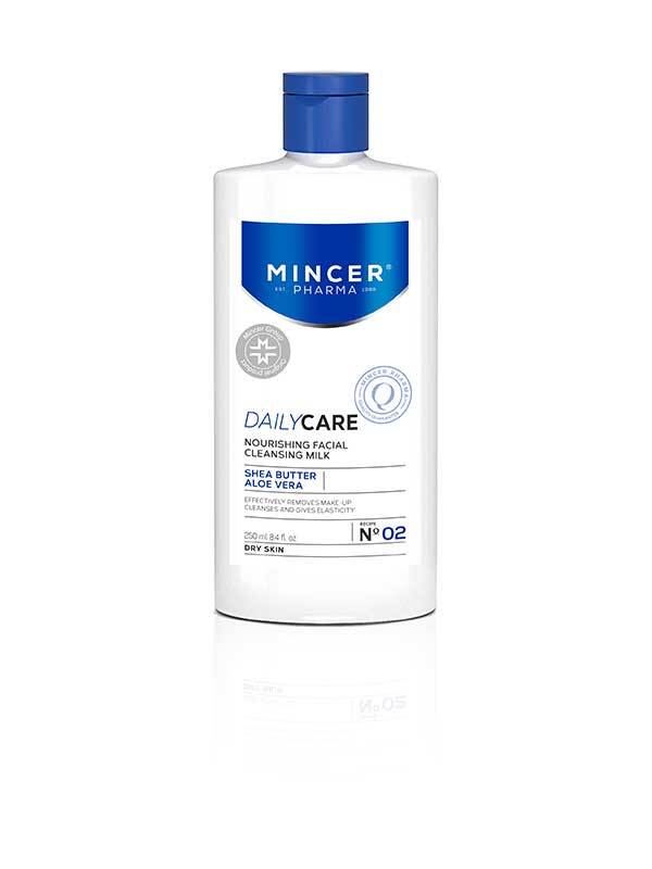 Mincer Pharman kosteuttava puhdistusmaito päivittäiseen puhdistukseen kasvoille ja kaulalle. Sisältää pehmentävää sheavoita ja rauhoittavaa aloe veraa. Silmänympärysiholle suositellaan DailyCare-silmämeikinpoistoainetta. DERMATOLOGISESTI TESTATTU.