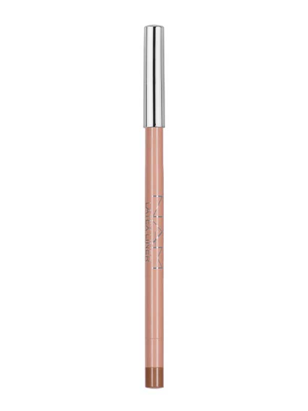 Huultenrajauskynä, jossa pehmeä koostumus. Sävy luumunruskea. Toisessa päässä teroitin.