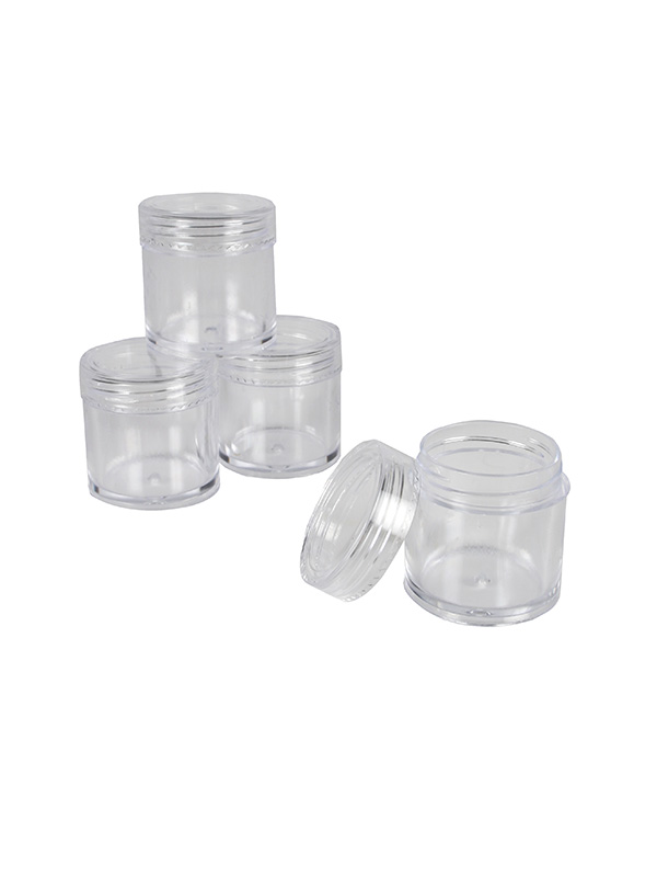 Läpinäkyvä purkki meikki- / voidenäytteitä varten tai kynsikoristeiden säilytykseen. Vinkki: myy asiakkaalle voiderasiaksi matkalle.