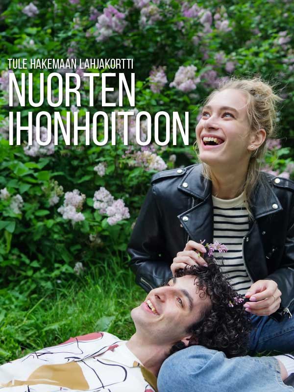 Kausijuliste “Tule hakemaan lahjakortti nuorten ihonhoitoon”, koko 50×70 cm, materiaali julistepaperi.