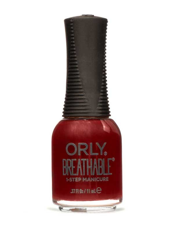 All-In-One happea läpäisevä koostumus: hoito-, alus-, väri- ja päällyslakka yhdessä pullossa. ORLY Breathable Treatment + Color sisältää Argan-öljyä, joka ravitsee, kosteuttaa ja edistää ihon sekä kynnen joustavuutta. Hoitaa kuivaa, rikkoutuvaa kynttä ja auttaa ehkäisemään ikääntymisen merkkejä. Provitamiini B5, pantenoli auttaa lisäämään kynnen kosteudensitomiskykyä ja ehkäisee kynnen kuivumista. C-vitamiini, antioksidantti, joka suojaa kynttä ympäristön kuluttavilta vaikutuksilta sekä vapailta radikaaleilta.