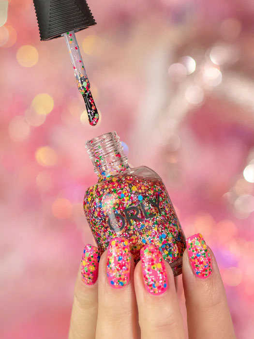 Confetti päällyslakka/koristelulakka. Vegaaninen kynsilakka. 600 karvan Genius Brush sivellin takaa tasaisen, viimeistellyn ja tarkan levityksen joka kerta.