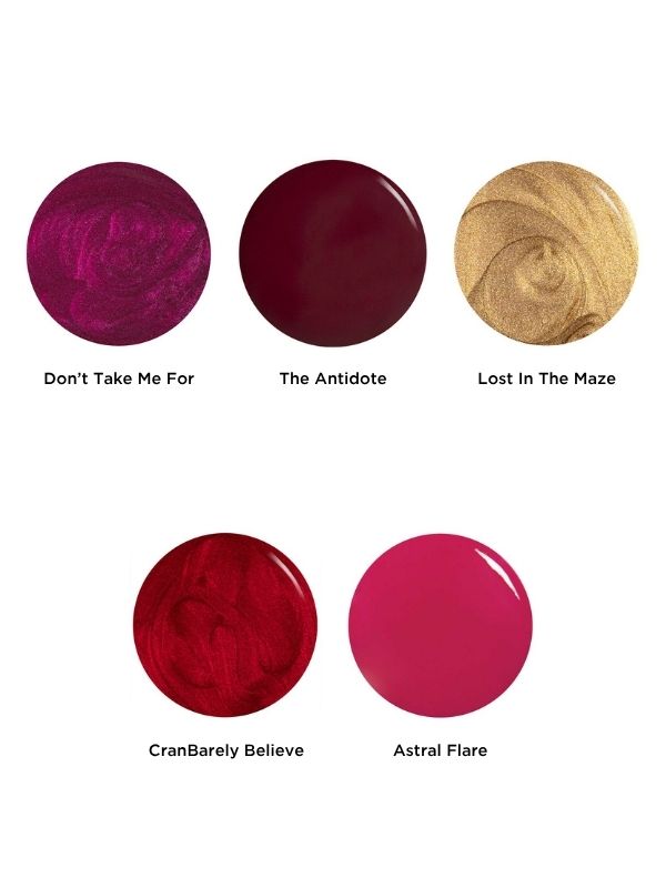 Pinkin ja fuksian sävyjä, jotka säteilevät energiaa ja iloa! Mukana myös kullan hohtoa! Tämä setti tuo kynsiin raikkaan, eloisan ilmeen ja samalla hoitaa kynsiä hellävaraisesti.