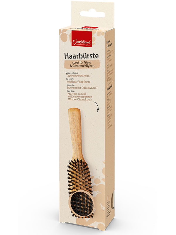 ”Sata harjanvetoa päivässä” on parasta hoitoa hiuksillemme ja päänahallemme. P. Jentschuran korkealaatuinen hiusharja tekee hiuksista luonnollisen kiiltävät, mutta estää myös hiusten latvoja kuivumasta ja muuttumasta hauraiksi.