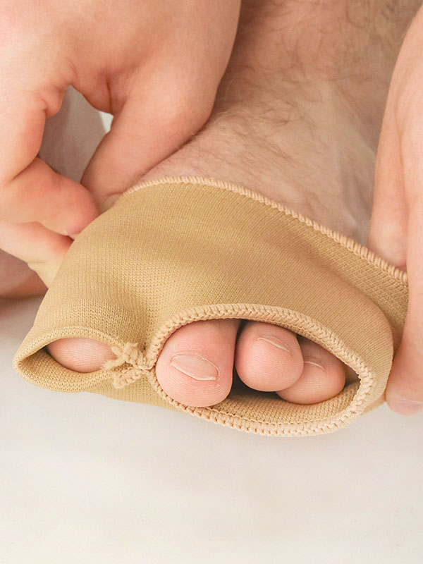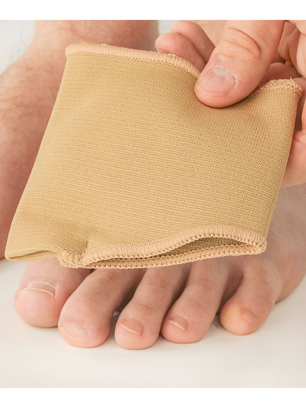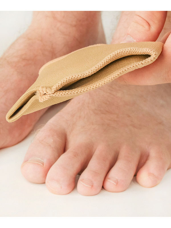 Jalkaan puettava, joustokankainen suoja, pehmeällä geelityynyllä keventää päkiänaluetta ehkäisten hiertymien ja kovettumien syntymistä. Lievittää tehokkaasti polttavaa kipua päkiäalueella esim. päkiän hermokivun (mortonin neurooma), rasvapatjan ohenemisen tai muun päkiänalueen aiheuttamalta vaivalta. Puetaan jalkaan niin että pehmeä geelityyny asettuu päkiänalueelle, 1. ja 2. varpaan välissä oleva ommel pitää pehmusteen hyvin paikallaan. Sopii noin 40-44 kokoiselle jalalle. Tilaa tarvittaessa oikean jalan suoja erikseen!