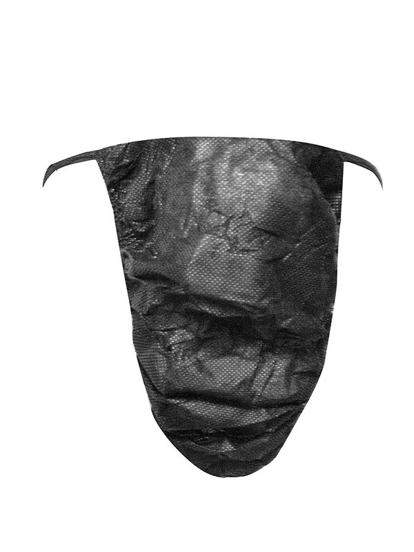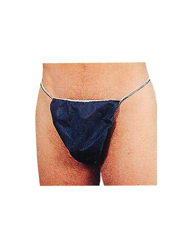 Miesten mustat string-malliset kertakäyttöiset pikkuhousut esim. vartalohoitoihin tai epilaatioihin.
