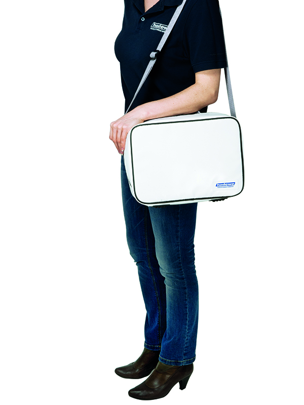 Erityisen kevyt olkahihnalla varustettu poralaukku, jonka sisä- ja ulkopinnat on valmistettu erittäin kestävästä materiaalista. Laukun ulkopuolen pohja on värjätty harmaaksi, jolloin erilaiset tahrat tai värimuutokset eivät näy niin helposti laskiessasi laukkua erilaisille pinnoille. Laukku on helppo pitää puhtaana ja kestää desinfiointiaineita. Sivut ja reunat on vahvistettu vaahtomuovilla.