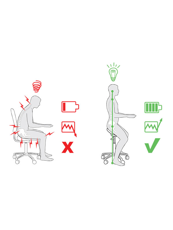 Istuin myötäilee kehon liikkeitä ja erilaiset eteen ja sivulle tehtävät taivutukset toimivat pilates-liikkeiden tavoin vahvistaen alaselän, lantion alueen ja vatsan lihaksia. Liikettä myötäilevä istuin auttaa säilyttämään selän luonnollisen notkon myös työtehtävissä, jotka tapahtuvat eteenpäin kurottaen.Kaksiosaisen istuimen erikoisuutena on istuimen leveydensäätö, joten tuoli sopii myös kapealantioiselle istujalle.