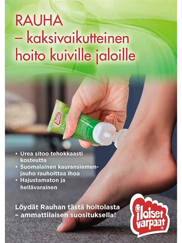 Sarjajuliste Iloiset Varpaat Rauha-jalkavoide, koko 50×70 cm, materiaali julistepaperi.