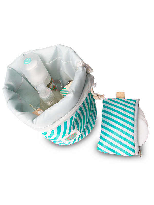 Ihastuttava Skin Candy -toilettilaukku. Rakenna oma tuotepaketti asiakkaidesi suosikki Skin Candy -tuotteista. Väri: turkoosi.