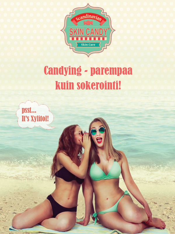 Skin Candy It’s xylitol -juliste. Pehmeän ja karvattoman ihon salaisuus on xylitol! Koko 50 x 70 cm. Materiaali: julistepaperi.