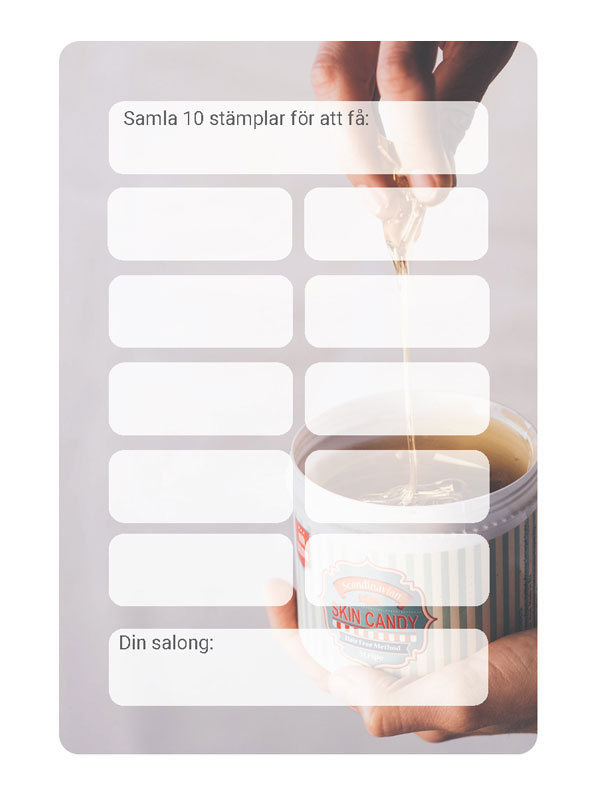 Skin Candy stämpelkort storlek 55x85mm 10 st