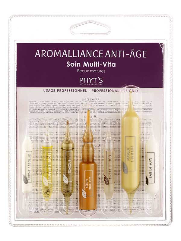 PHYT’S Aromalliance Anti-Âge Soin Multi-Vita on ravitseva ja uudistava anti-age-ammattihoito ikääntyvälle iholle. Hoito on suunniteltu korjaamaan, vahvistamaan ja elvyttämään ihoa luonnollisin, tehokkain aktiiviainein.