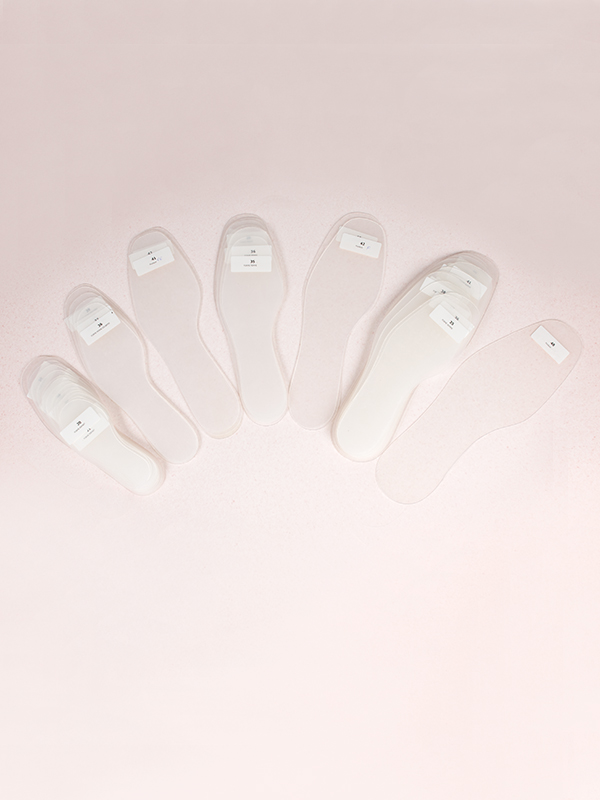 Muovia, voidaan pestä. Nipussa 40 läpinäkyvää osaa. Koot 20-46. Huom! Nyt ohuempia kuin aiemmin.
