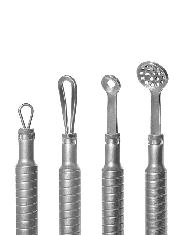 Kolmen työkalun setti ihon mekaaniseen puhdistukseen.