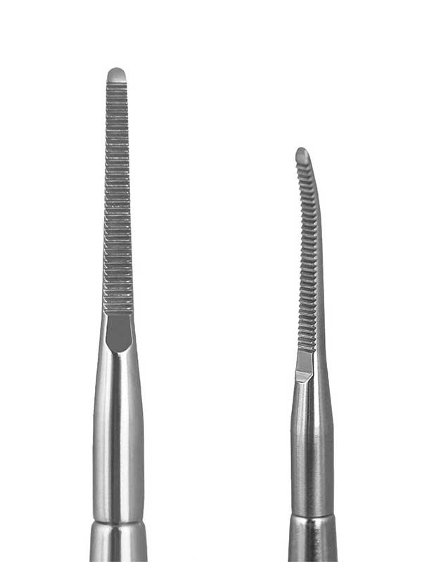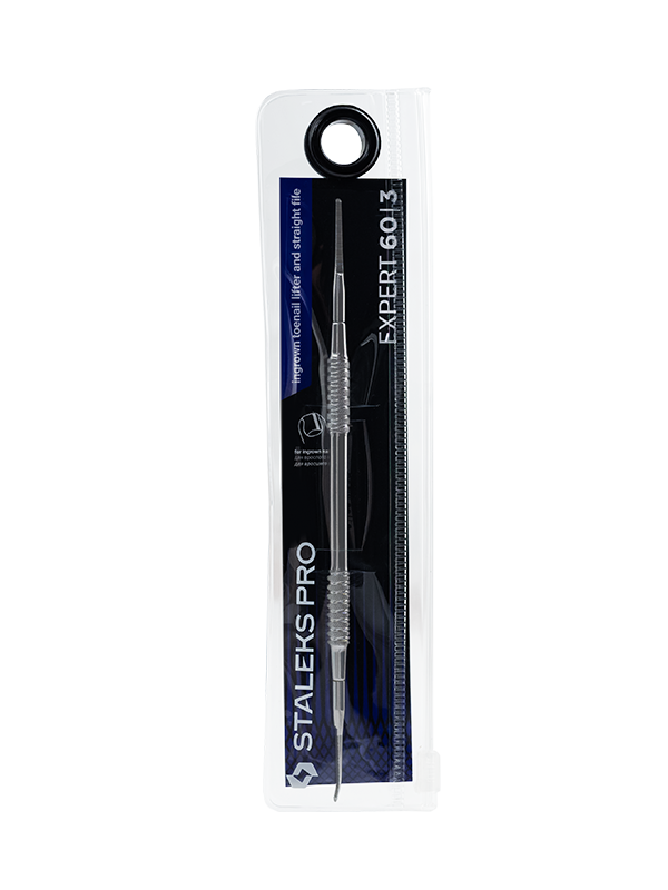 Kaksipäinen kulmaviila kynsiuurteiden puhdistamiseen ja kynnen reunan viilaamiseen. Instrumentin toinen pää suora ja toinen hieman kaareva.