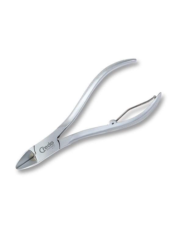 Suora leikkuri 18 mm pituisilla terillä. Erittäin kapea ja ohut terä sisäänkasvaneiden kynsien tarkkaan leikkaamiseen. Mukava pitää kädessä, aaltoileva kahvapinta. Kestää desinfioinin ja steriloinnin.