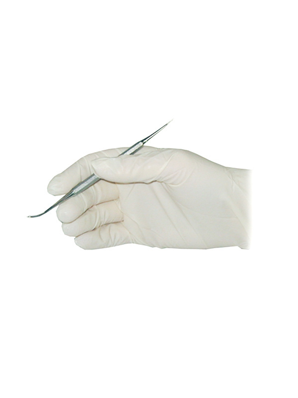 Luonnonkumista valmistettu valkoinen kertakäyttökäsine. Kevyesti puuteroitu.
