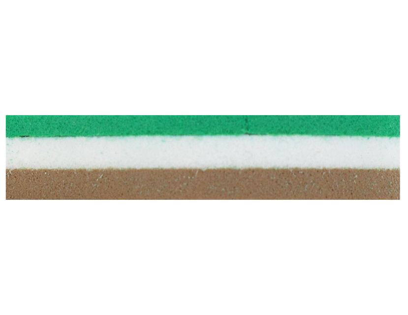 Kolmikerrosmateriaali, joka sopii erityisen hyvin urheilu- tai vapaa-ajan kenkiin korjaavaksi materiaaliksi. Hyvä iskunvaimennus ja kestävä pohjamateriaali. PE color vert MP 2,5 mm + PXA 3 mm + PRX 3 mm. Muotoilulämpö 110°C