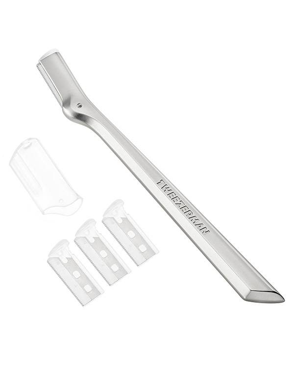 Laadukas ruostumattomasta teräksestä valmistettu kulmaveitsi jonka lyhyellä terällä poistuu kulmakarvojen ylä- ja alaosan karvoitus vaivattomasti. Pakkauksessa mukana yksi varsi terällä, suojakorkki sekä 3kpl vaihtoteriä.