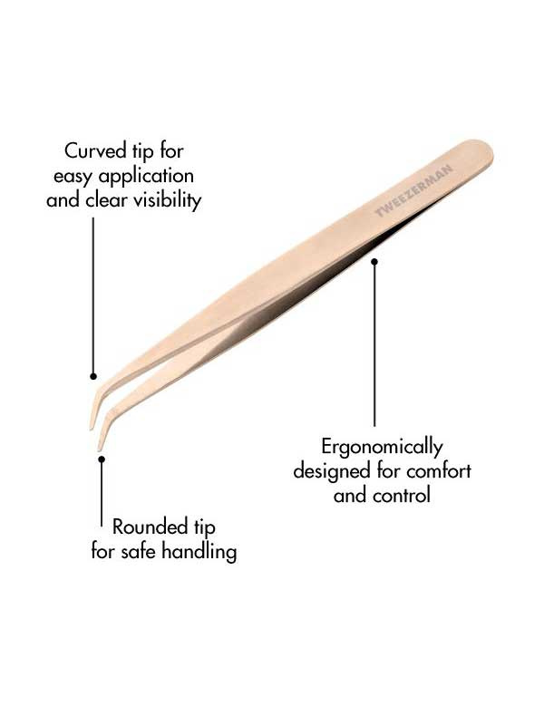 Pyöreäkärkiset erikoispinsetit irtoripsien vaivattomaan, turvalliseen ja hygieniseen asetteluun. Sävynä kaunis ruusukulta.